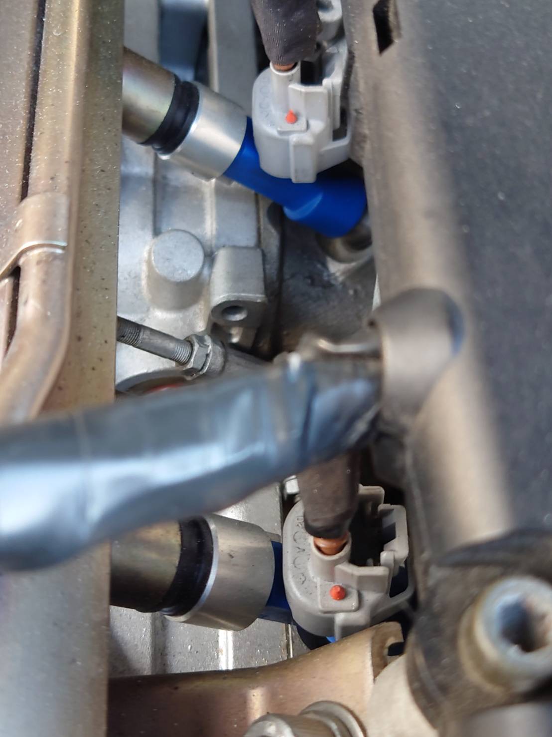 ガソリンタンク上部のセンサー部の異なる素材部分も